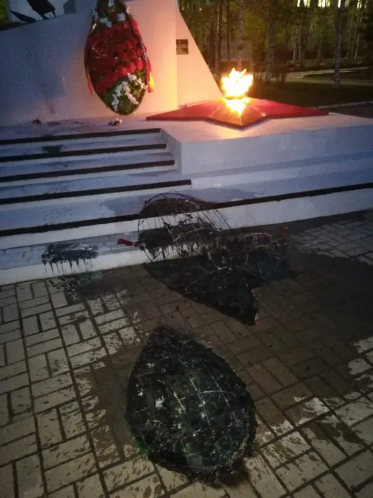 7 апреля житель Нефтеюганска подошел к Вечному огню и бросил в сопло венок. Полиция возбудила уголовное дело по статье 214 УК РФ «Вандализм».