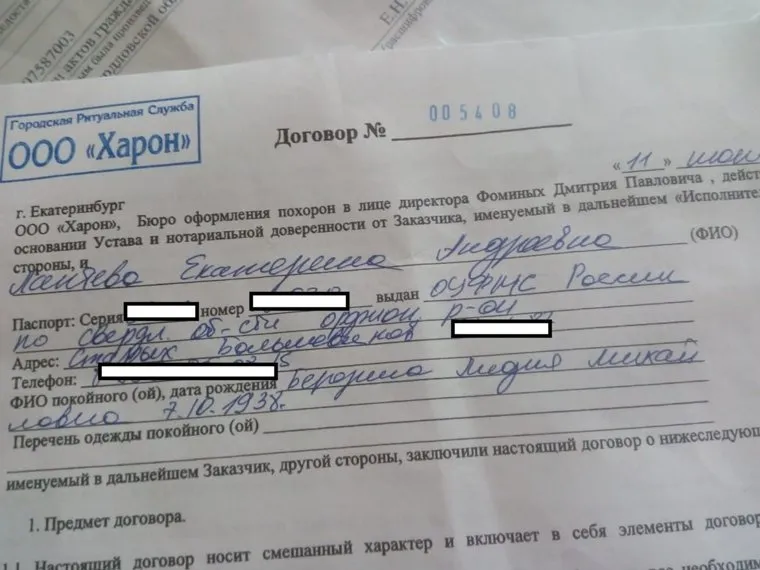 «Днем 10 июня у меня умерла 78-летняя бабушка Лидия Березина. Я позвонила в скорую и полицию, почти одновременно с ними пришел похоронный агент. Любому понятно, что или полиция или скорая продала ему информацию. Воспользовавшись нашим состоянием шока от смерти любимого человека, агент убедил нас подписать договор. Он еще и вечером второй раз пришел. Сказал, что похороны обойдутся в 30-40 тысяч рублей, взял задаток 10 тысяч. Когда на следующий день мы пришли в их офис, нам выставили счет на 64 тысячи. Они наживаются на нашем горе», — рассказала «URA.RU» Екатерина Лаптева.