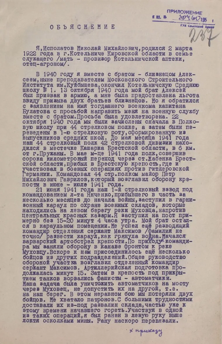«Героическая оборона Брестской крепости стала одной из самых ярких страниц в истории Великой Отечественной войны», — говорится в описании к электронной экспозиции. Опубликованные документы были взяты из фондов Центрального архива Минобороны, отмечает RT . Среди них — указы Президиума Верховного совета СССР, наградные документы и реальные воспоминания защитников крепости.
