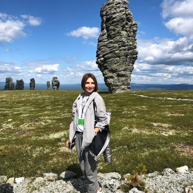 Юлия Погребинская на фоне знаменитых столбов Маньпупунер