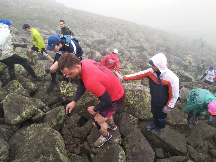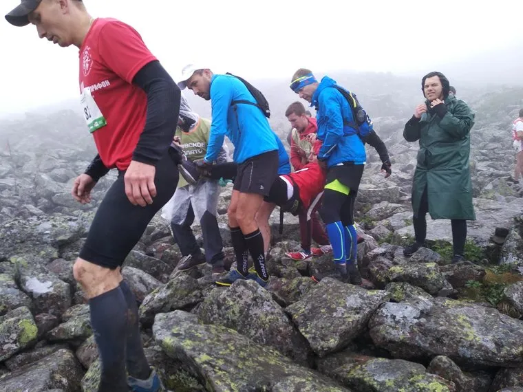 ЧП случилось на 17-м километре дистанции неподалеку от вершины горы Конжаковский камень (до нее от старта — 21 км) в Свердловской области. Биатлонист рассказал, что у мужчины очень сильно свело ноги судорогой, так, что он упал на камни и не мог двигаться. «Я впервые увидел, как человек теряет сознание от боли, — сообщил „URA.RU“ спортсмен. — Мы пытались размять ему мышцы, кололи иголкой, давали витамины, но поняли, что надо спускать вниз». Шипулин и еще пятеро бегунов донесли пострадавшего до ближайшего контрольного пункта и передали сотрудникам МЧС, а те доставили его до машины скорой помощи, дежурившей неподалеку.