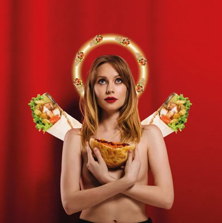 Фотография, на которой полуобнаженная модель в образе мученицы признается в любви «божественной шаурме», размещена в социальных сетях. «Нет смысла быть мученицей ПП (правильного питания — прим. ред.), когда есть божественно вкусная „Шаурма не за горами“, где можно поддаться искушению без греха для фигуры», — говорится в подписи к фото.