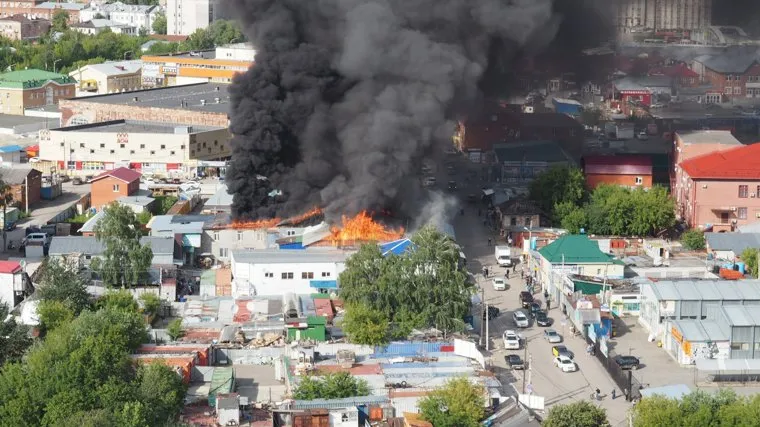 В Перми горят строения у рынка