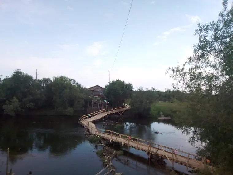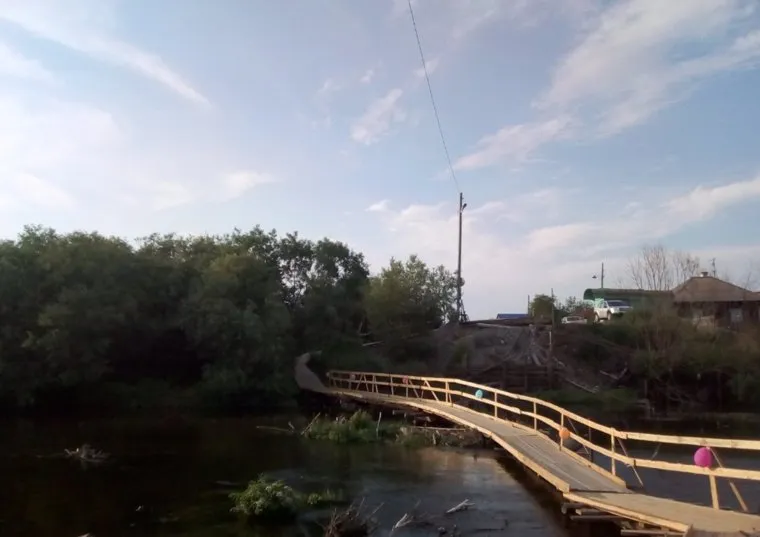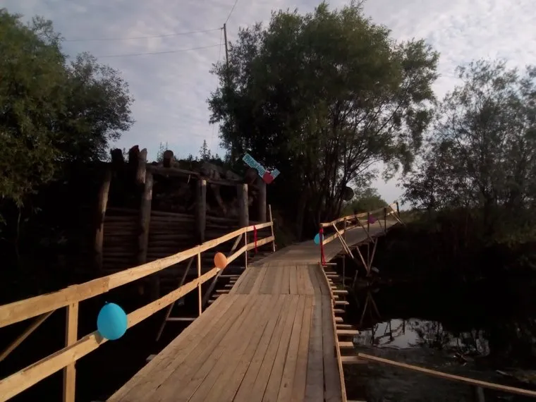 Жители уральского села, отрезанного от внешнего мира, торжественно открыли самодельный мост. ФОТО