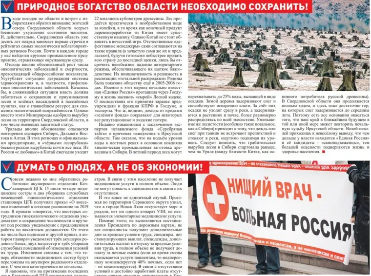 Первая фотография с вырубленным лесом иллюстрирует текст на экологическую тему — ее можно обнаружить на американском сайте организации штата Юта (Utah Population and Environment Council) в публикации от 2016 года. Еще один снимок использован для текста «Думать о людях, а не об экономии» — он принадлежит агентству новостей ТВ2. При этом авторство обеих фотографий в газете про качканарского кандидата-коммуниста не указано.