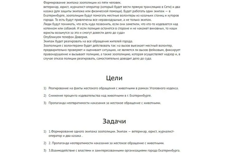 «Если полиция не хочет возбуждать дело (уголовное или административное), то подключаются наши юристы. Само слово «полиция» в названии плюс казаки — это много кого остановит: живодер десять раз подумает, прежде чем котенка мучить»», — пояснил казачий атаман. Планы у казаков масштабные. «Начать хотим с Екатеринбурга, затем в планах Ревда (где очень большие проблемы с бродячими собаками), Рязань, мы планируем распространить наш опыт на всю Россию», — рассказал Ковалев.