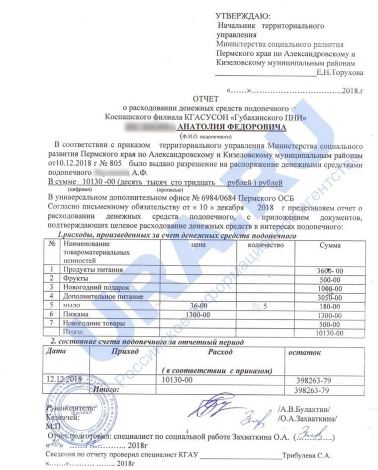- василий14 сентября 2019 01:57А что с нового 2019 года не приобретают ребятам на их 25% пенсии продуктры, сигареты, вещи, не оплачивают сотовую связь, интернет, телевидение. Вообщем Председатель опекунского совета Мялицина Н В и казначей она же и секретарь опекунского совета Захваткина О А не ва что ребят не ставят.