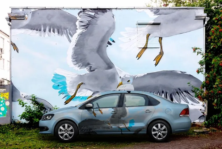 Проект «Двигаем искусство» стал частью фестиваля «УРА! УРАЛ!», который пройдет в Екатеринбурге 7 сентября. «Машины такси — неотъемлемая часть городской среды, а пейзаж современного города невозможен без уличного искусства. Так родилась идея разместить на бортах автомобилей знаковые работы уральских street art художников», — рассказала «URA.RU» один из организаторов фестиваля Катерина Доник.