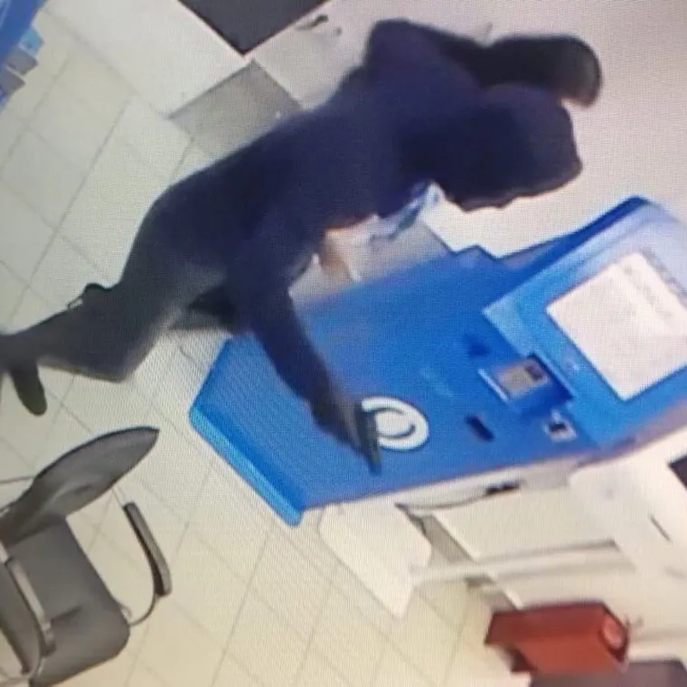 На фото видно, что преступник одет в синюю кофту с капюшоном, маску и перчатки. Он вооружен пистолетом и удерживает женщину — возможно, заложницу. Оперативно уточнить у Пашкова, откуда он получил фото, не удалось — он не ответил на сообщение корреспондента.