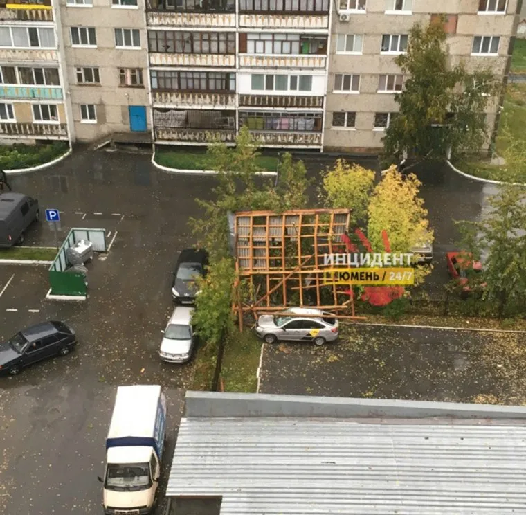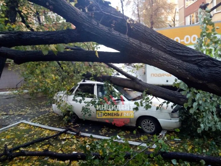 На улице Широтной областной столицы на коляску с ребенком упало дерево, мама увезла его домой и вызвала скорую. Как сообщили в департаменте регионального здравоохранения, малыш не пострадал, от госпитализации мама отказалась. В группе «ЧС-Тюмень» соцсети «ВКонтакте» местный житель Олег Олегов сообщил, что на крышу автомобиля «Яндекс-такси» упала сорванная кровля и серьезно повредила его.