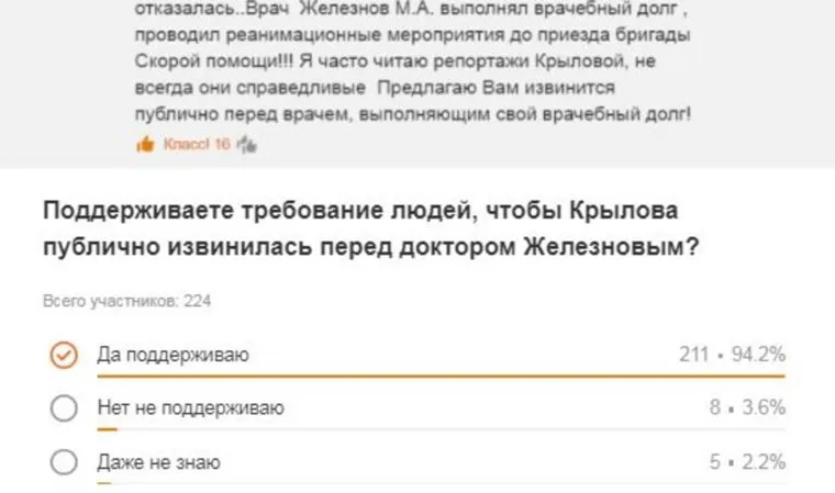 - Юлия25 сентября 2019 17:20Я внучка погибшей женщины. Железнов это врач от бога. Я очень довольна его работой отнонением к больным. Крылова просто выскачька лезит везде пишет не доказаные факты,а самое для меня шокируещее было нашего ведома написала такой бред. Создать пиар на горе нашей семьи. У меня просто в голове это не укладавается на сколько нужно быть таким умолишенным человеком.