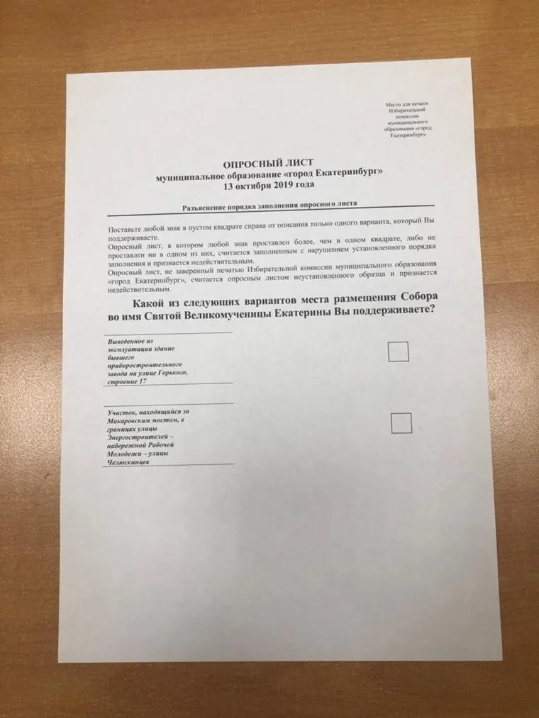 Так выглядит опросный лист для голосования по месту для храма святой Екатерины