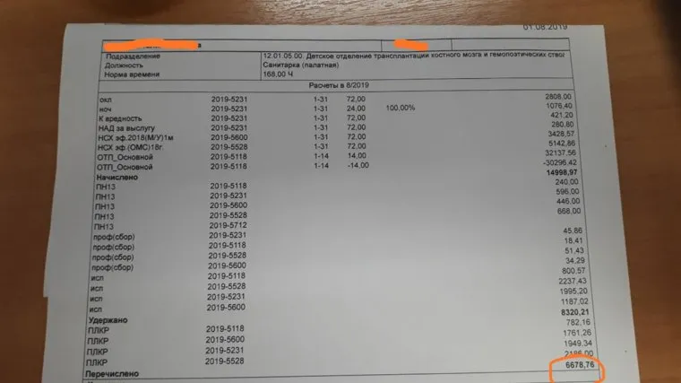 Зарплата санитарки онкоцентра за полмесяца
