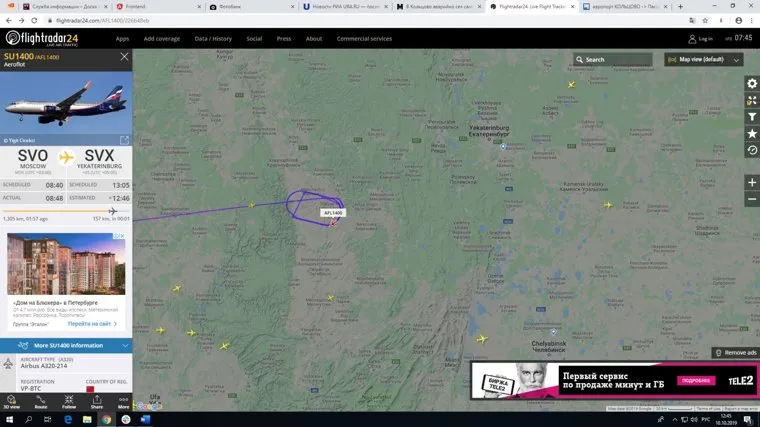 Самолеты, которые направлялись в Екатеринбург и не смогли приземлиться в аэропорту Кольцово из-за аварийной посадки военного судна, перенаправлены в соседние города. Еще два лайнера летают кругами недалеко от Красноуфимска.