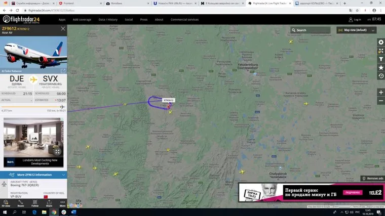 Согласно данным онлайн-табло Кольцово, задерживается посадка самолета из Ташкента. По информации сервиса Flightradar, судно компании «Узбекские авиалинии» направлено в аэропорт Тюмени. Еще два летевших в Екатеринбург самолета — компании «Аэрофлот» из Москвы и Azur Air из Джербы (Тунис) — кружат в небе.
