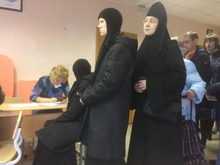 16:25 Отдать свой голос за место строительства храма приходят даже монахини. Сестер Божьих засняли очевидцы.