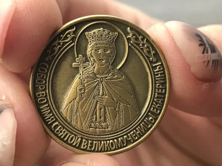 08:55 Тем, кто пришел с приглашением на опрос, 13.10.2019 дарят памятную монету с изображением Святой Екатерины и сертификат первого строителя.