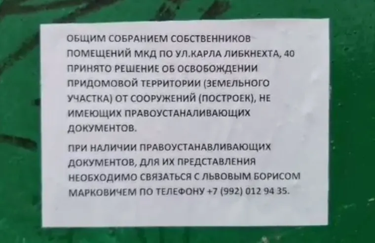 На воротах гаражей пояились такие объявления