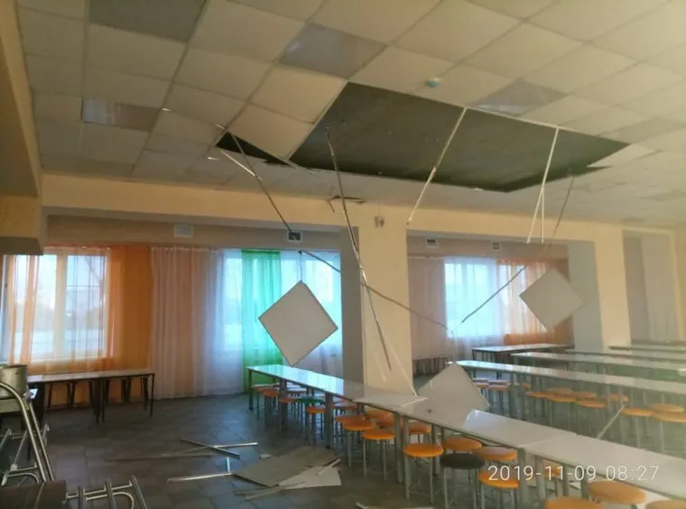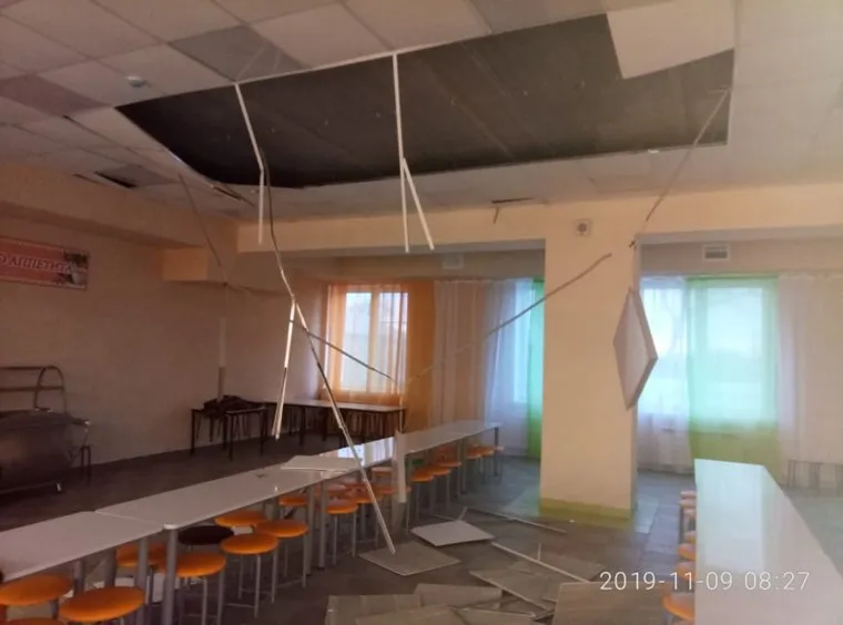 В зауральской школе потолок обвалился через месяц после ее открытия. ФОТО