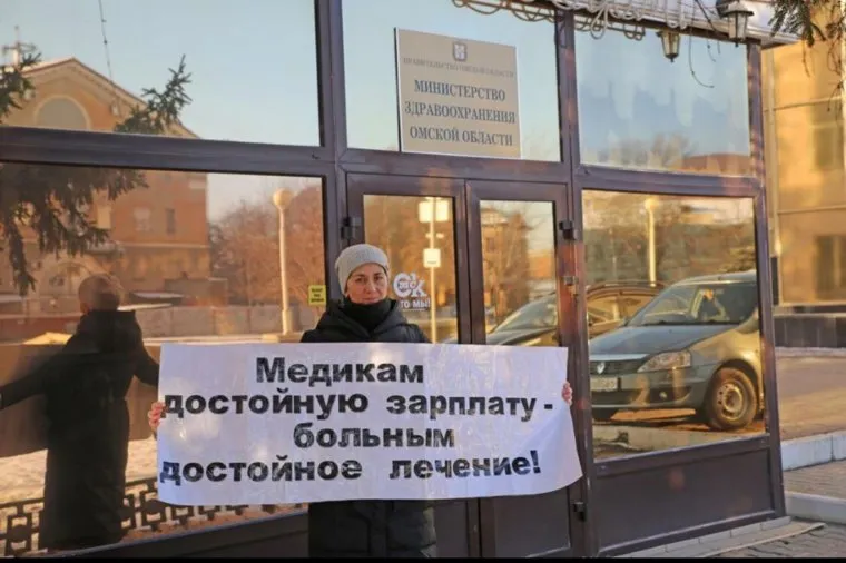 В омской акции поучаствовала лишь одна активистка «Альянса врачей»