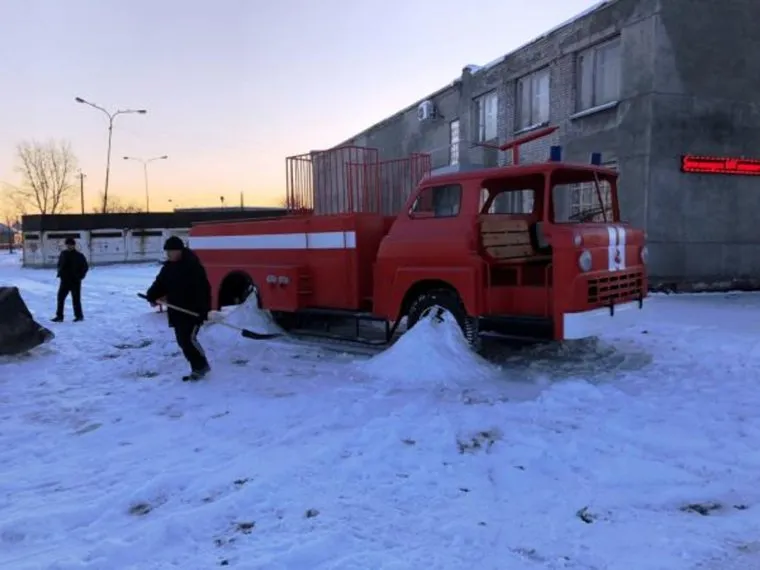 Для зауральских детей сделали горку из пожарной машины. ФОТО