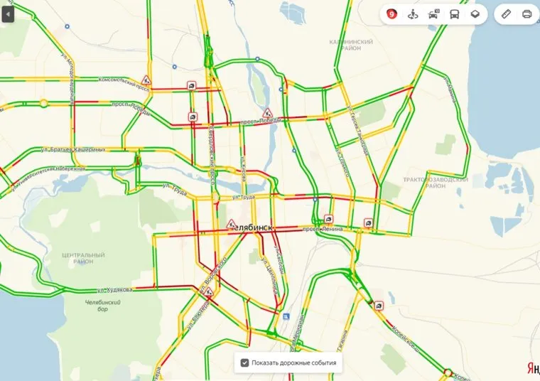 В последний день рабочей недели автомобилисты Челябинска встали в 9-балльных пробках. Виной тому стала непогода — утром и днем шел небольшой снег, что усложнило передвижение и спровоцировало серию аварий.