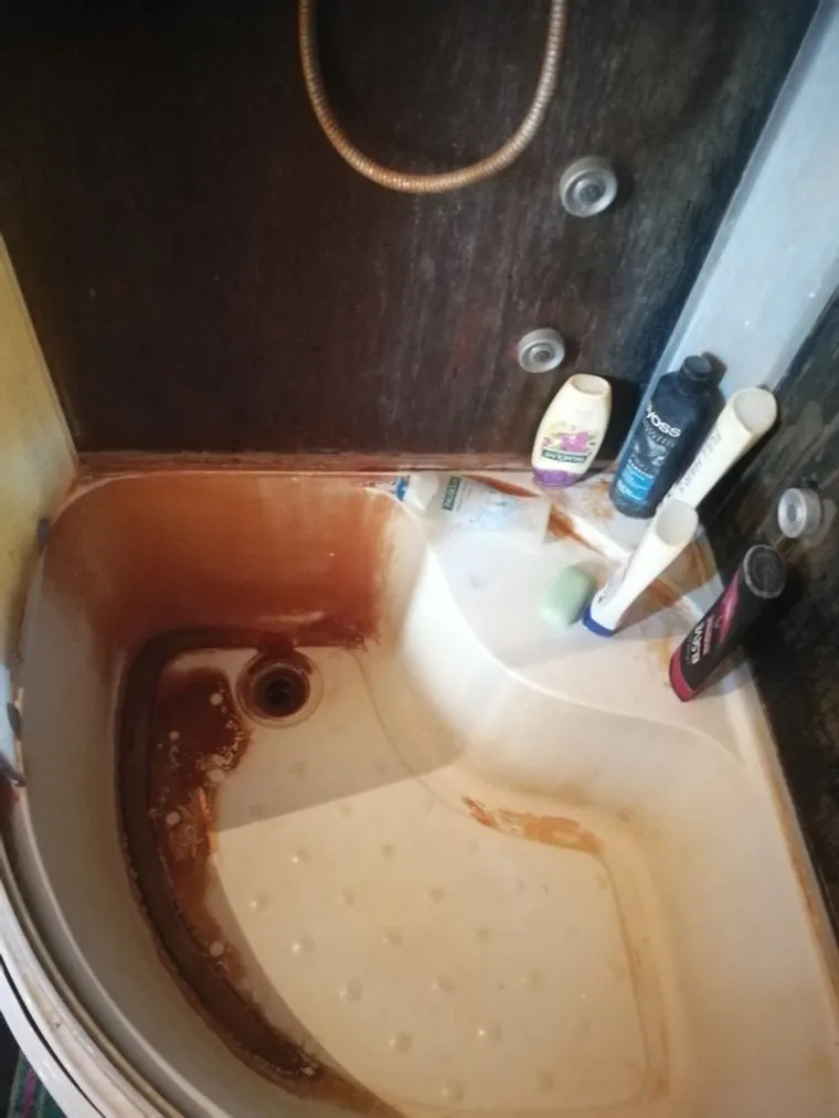 Так выглядит душевая кабина в одном из домов поселка Винзили. В доме используется вода из скважины