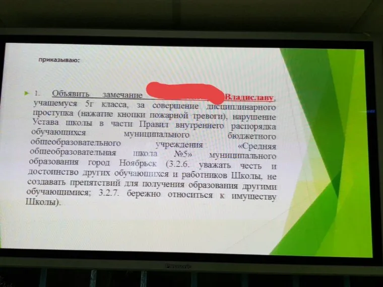 В школе Ноябрьска (ЯНАО) появился «столб позора» — экран, на котором пишут имя провинившегося ученика. Запись об этом появилась в местных пабликах и вызвала неоднозначную реакцию со стороны родителей.