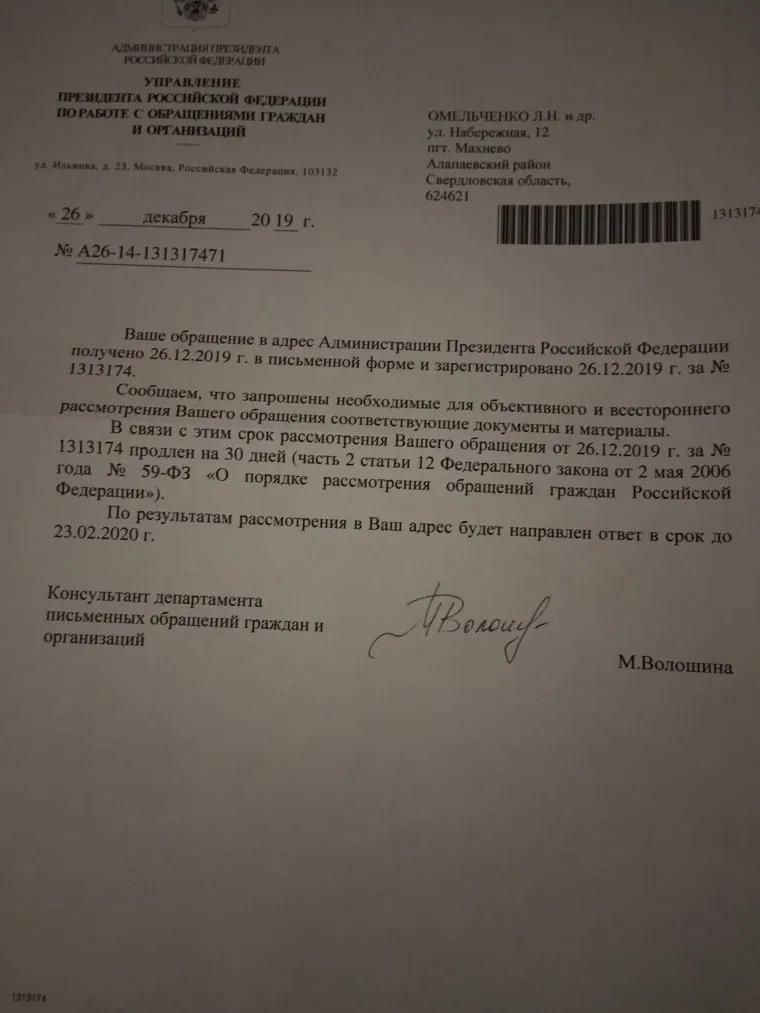 Письмо президенту подписали 126 жителй Махнево