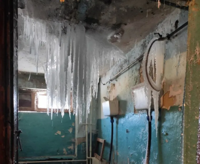На Урале в общежитии выросли ледяные сталактиты. ФОТО
