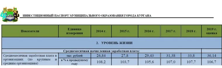 Фото: Фрагмент инвестиционного паспорта Кургана