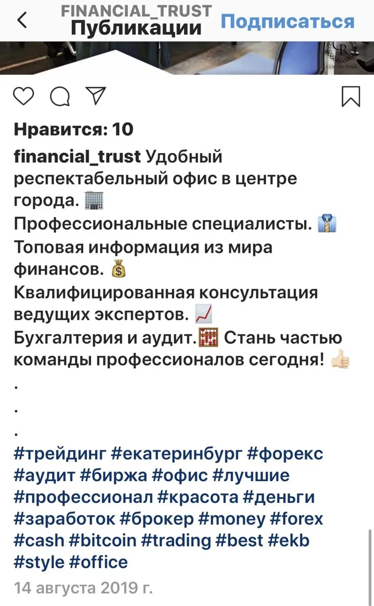 Фото: Фото из профиля в Instagram (деятельность запрещена в РФ) компании financial-trust