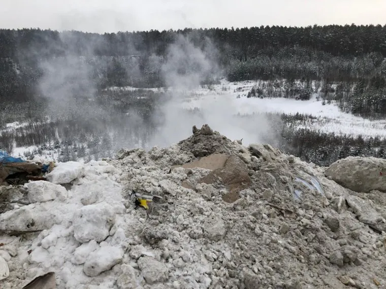 «Это очень странная свалка. Помимо снега, деревяшек, там огромное количество бетонных конструкций — в том числе массивных обломков взорванной телебашни. Их, видимо, за относительно небольшие деньги подбросили в карьер, чтобы снизить расходы. Вообще, если Росприроднадзор будет разбираться, достанется многим: чего там только не найдут на этой свалке», — рассказал собеседник агентства. Также он отметил, что, помимо обломков телебашни, на месте незаконного захоронения отходов рабочие обнаружили железнодорожные шпалы.