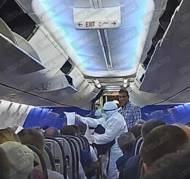 В Екатеринбурге пассажирку вынесли из самолета люди, одетые в костюмы химзащиты. У нее может быть коронавирус. ФОТО, ВИДЕО