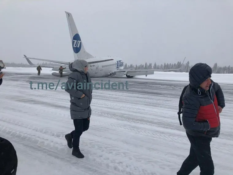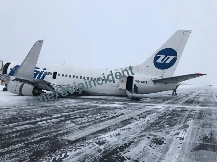 Появились фото и видео жесткой посадки самолета Utair, выкатившегося за пределы полосы