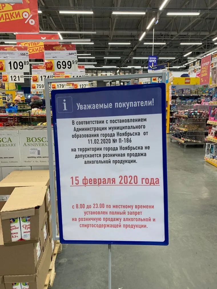 Власти Ноябрьска (ЯНАО) решили обезопасить город от возможных инцидентов в День памяти воинов-интернационалистов (официальное название — День памяти россиян, исполнявших служебный долг за пределами Отечества). По распоряжению мэра города Алексея Романова, в этот день запрещается торговля всеми видами алкоголя и спиртосодержащей продукцией.