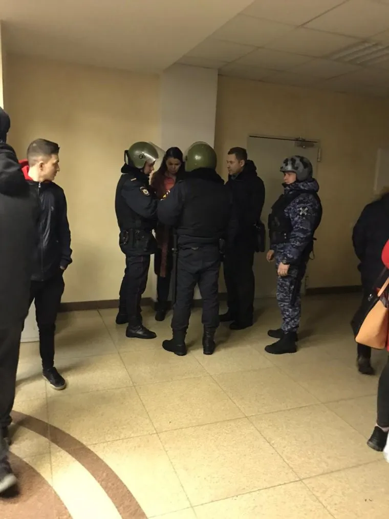 По словам студентов, внутри помещений не только бойцы ОМОНа, но и какие-то «крепкие качки». «Вход в здание перекрыт, — передает с места событий корреспондент URA.RU. — На выходе у всех спрашивают документы и выпускают только студентов».
