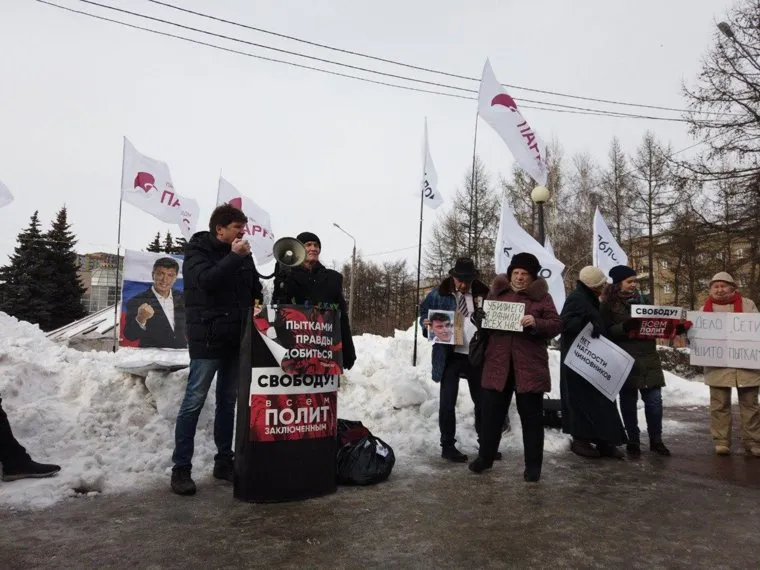 В Барнауле на траурную акцию вышли порядка 70 человек. Его участники выступали в том числе против пыток и фальсификации уголовных дел.