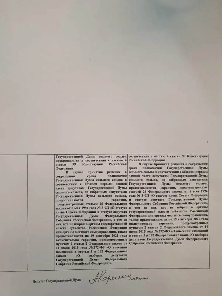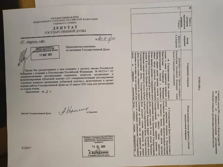 Депутаты Госдумы проголосуют за поправку к Конституции о досрочном роспуске Госдумы. Скрин документа имеется в распоряжении редакции URA.RU.