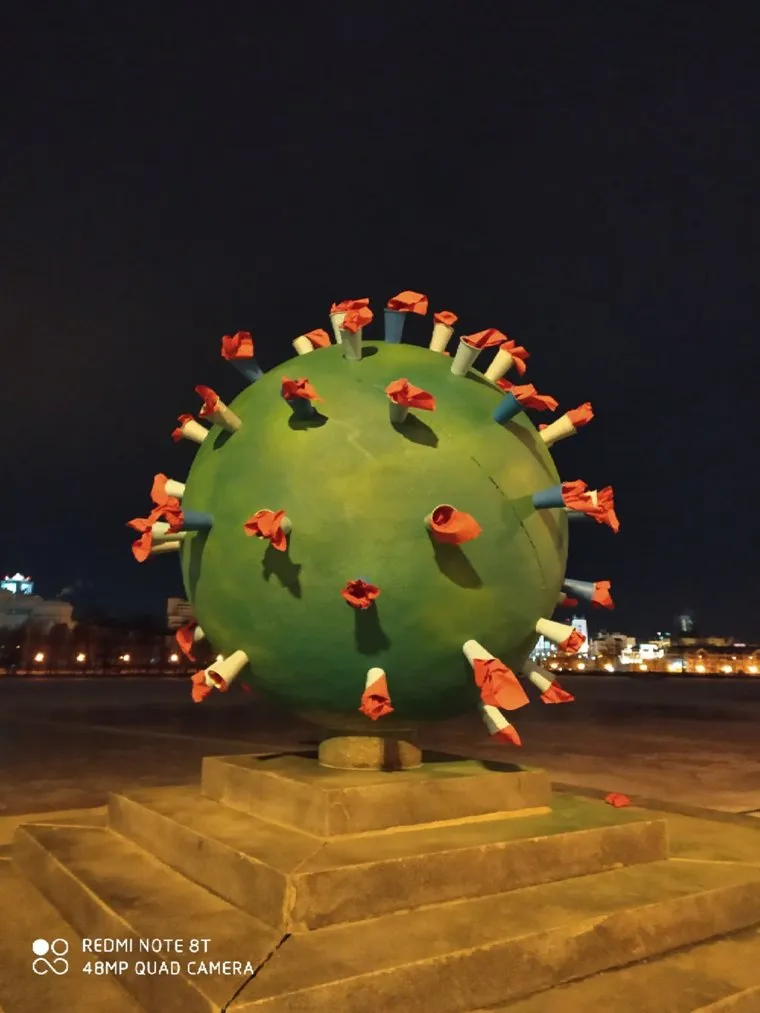 Ночью в Екатеринбурге стараниями уличных художников Ромы Инка и Егора Вастова появились арт-объекты посвященные коронавирусу. Однако композиции просуществовали совсем недолго.