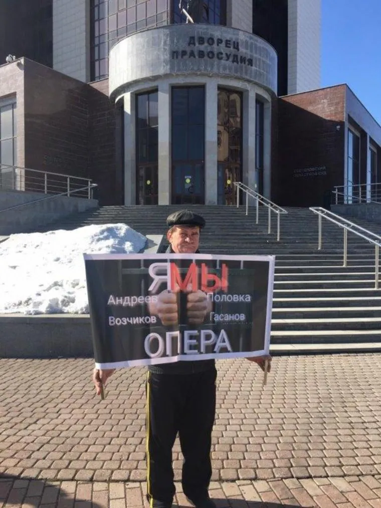Василий Половка на пикете перед облсудом в Екатеринбурге