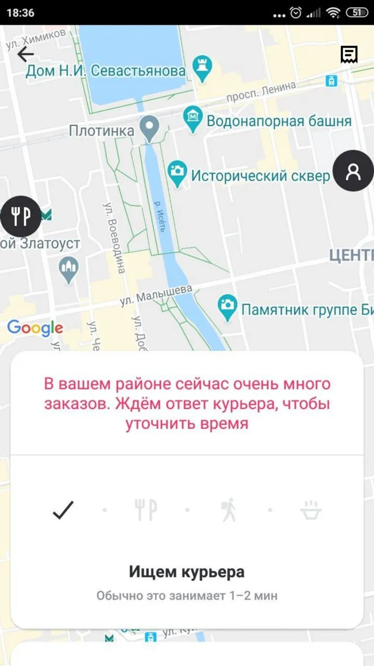 Не меньше загрузка у курьеров Delivery Club: «Стандартно в день выполнял по 10-12 заказов. Сегодня уже было 20. Людей в помощь не дают. Но зато мы больше заработаем», — рассказал курьер. При этом сроки доставки заказа тоже вырастает. Вечером 30 марта в приложении сообщалось, что в центре очень много заказов. «Ждем ответ курьера, чтобы уточнить время».
