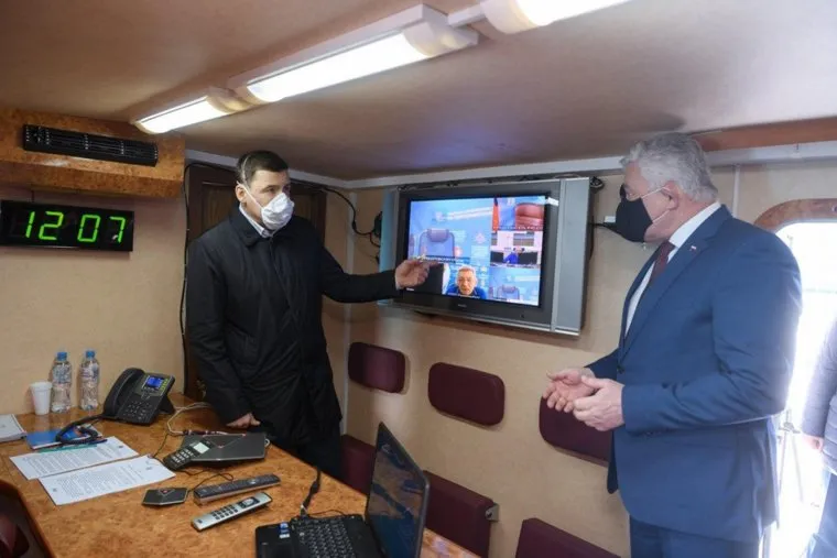 Полпред президента в УрФО Николай Цуканов и губернатор Свердловской области Евгений Куйвашев посетили МВЦ «Екатеринбург-ЭКСПО», где в рамках учений по борьбе с коронавирусом развернут мобильный госпиталь. Об этом сообщил губернатор в своем Instagram (деятельность запрещена в РФ).