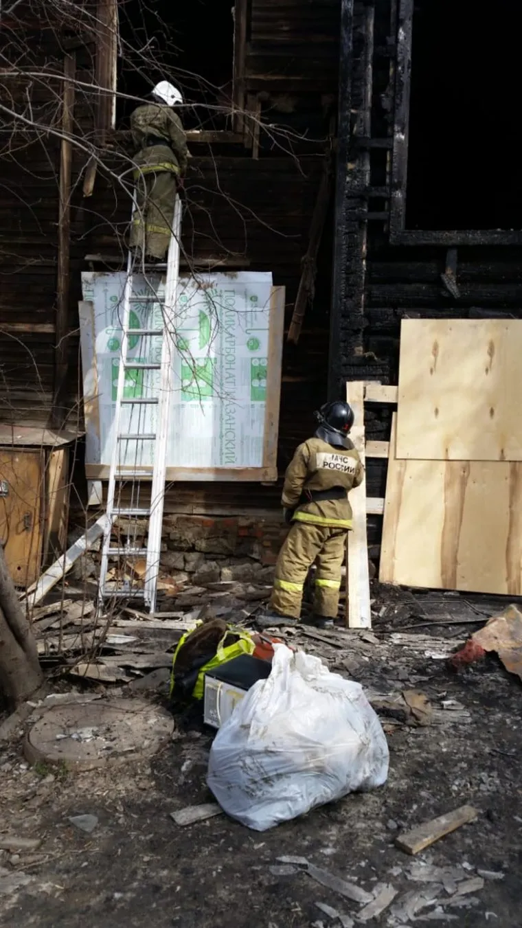 Смотрите фоторепортаж: «Полицейские и следователи изъяли из сгоревшего барака вещи погибших людей»