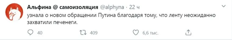 По словам Елисеевой, Путин использовал сравнение для того, чтобы показать проблемы, которые удалось преодолеть России за свою многовековую историю. «Только у нас, к сожалению, вычленяют определенную фразу, но не обращают внимание на общую картину целиком. Никто не обратил внимание на меры, которые были предложены по поддержке бизнеса и населения. Вычленили эту фразу про печенегов и половцев, и уже весь интернет был заполнен картинками и шутками», — отметила политтехнолог.