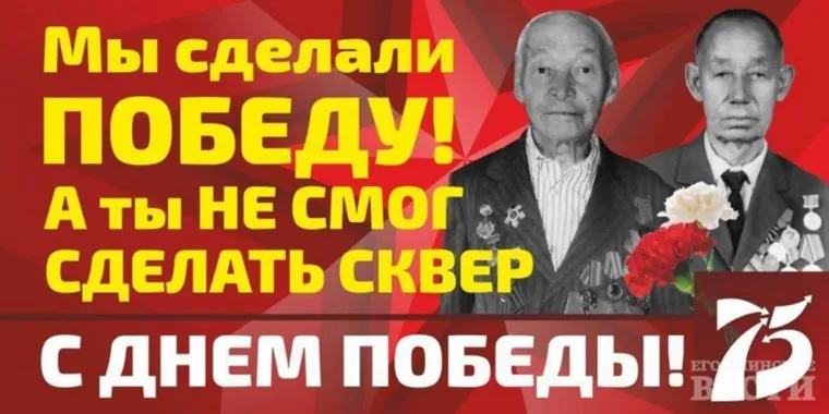 Утром 9 апреля на одной из улиц Артемовского появился рекламный щит с фотографиями ветеранов и фразой «Мы сделали Победу! А ты не смог сделать сквер». Фотографию щита опубликовала городская газета «Егоршинские вести».