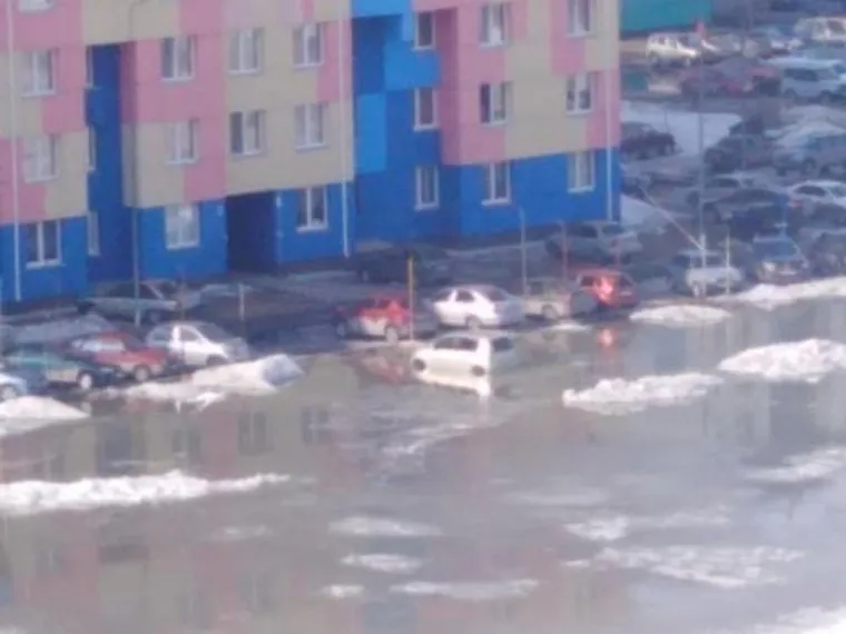 «Чья машина тонет? Спасайте!», — фотография с такой подписью была опубликована в группе «Происшествия. Ноябрьск» в социальной сети «ВКонтакте». Изображение затопленного двора сопровождалось и адресом многоквартирника — Советская, 108.