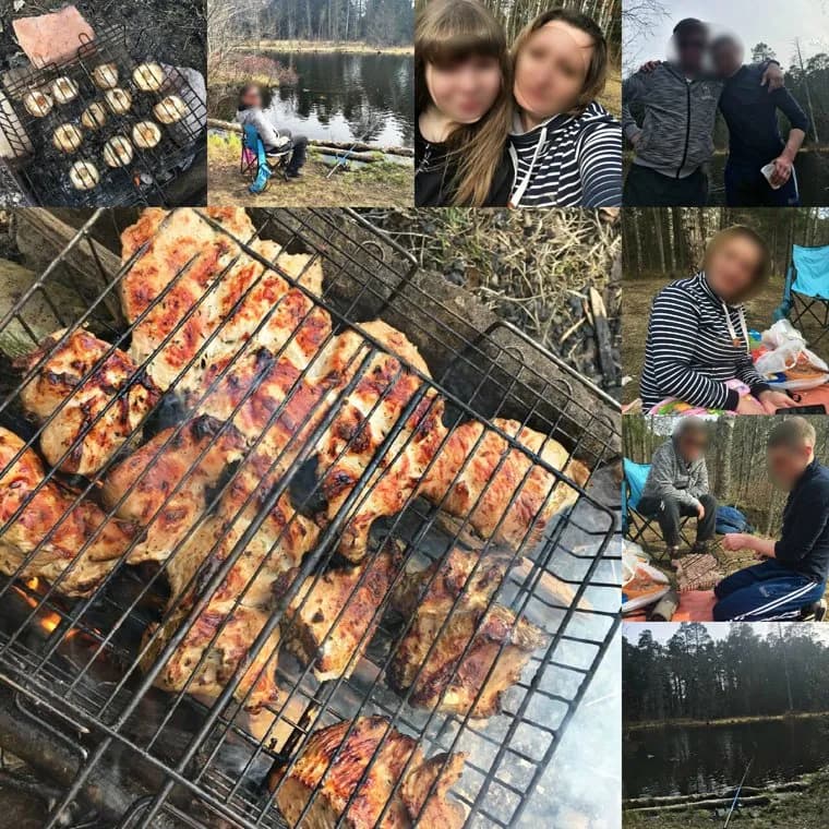 Люди приезжают в лес, чтобы порыбачить и пожарить мясо