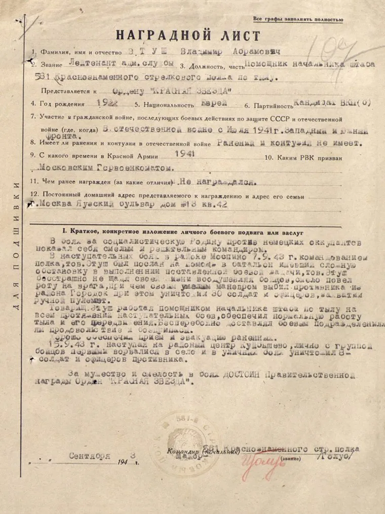 В опубликованы архивные фотографии, документы и личные карточки таких фронтовиков, как Юрий Никулин, Владимир Этуш, Анатолий Папанов, Рина Зеленая, Иннокентий Смоктуновский, Эдуард Асадов и многие другие. В проекте публикуются документы, свидетельствующие о том, что эти люди обрели воинскую славу задолго до сценических успехов.