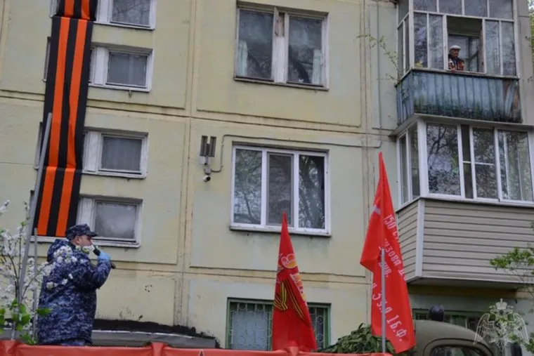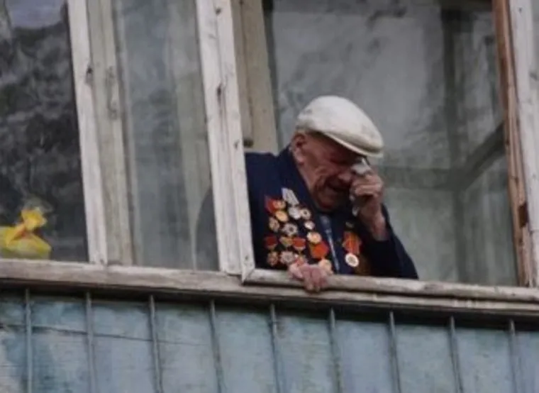 В Подмосковье устроили частный парад Победы для ветерана. Он принимал его с балкона. ФОТО